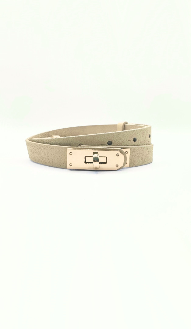 Утонченный ремень с замком пряжкой из натуральной кожи – идеальный аксессуар для стильного образа. Модель дополнена оригинальной золотой пряжкой, придающей изысканности. Благодаря классическому дизайну такое изделие подойдет как к платьям, так и к брюкам или юбкам. Легкая регуляция длины позволяет комфортно фиксировать ремень на талии. Надежная фурнитура и качественное исполнение гарантируют долговечность.