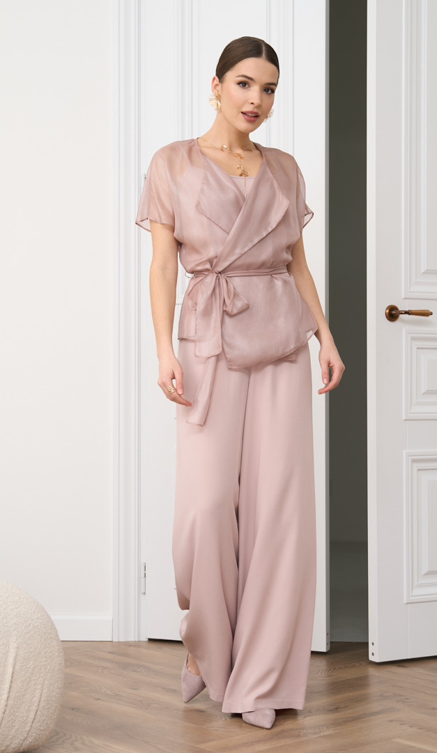 Рекомендуем комбинировать блузку с брюками палаццо пудровыми (арт.4048) и топом на тонких пудровых бретелях (арт.2860).