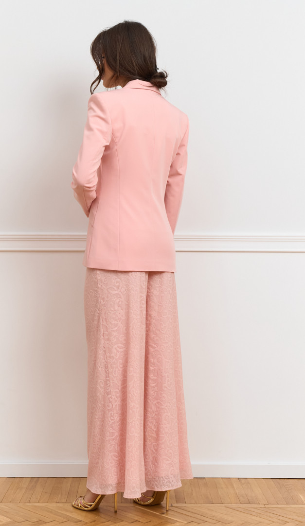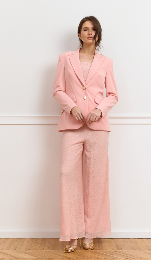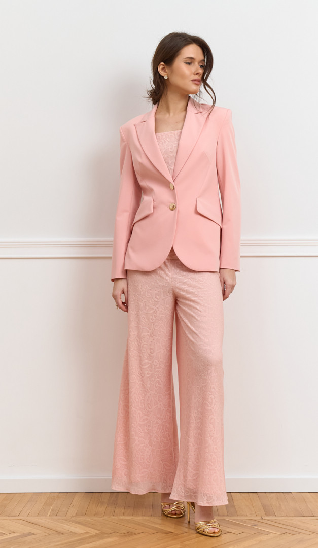 На фото создан лук с топом гофре розовым (арт.2913) и жакетом классическим розовым (арт.4051).