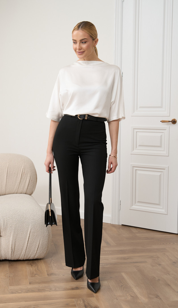 На фото создан образ с блузкой молочной базовой (арт.2864).