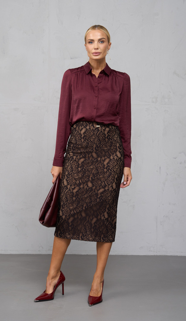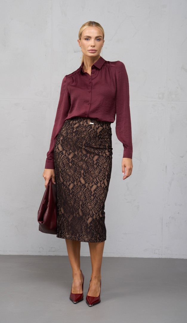 На фото создан образ с блузкой на пуговицах бордо (арт.2722)
