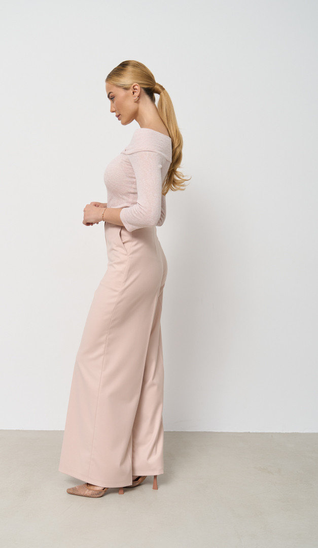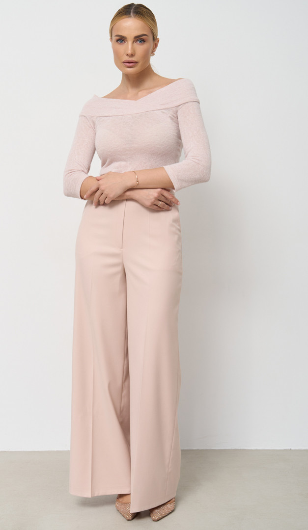 На фото создан образ с брюками палаццо пудровыми с карманами (арт.1870).