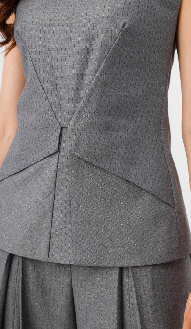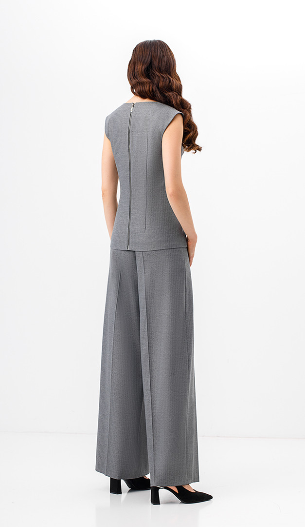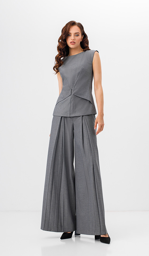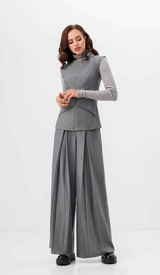 Для создания элегантного образа рекомендуем жилет комбинировать с широкими брюками в полоску серыми (арт.1802).