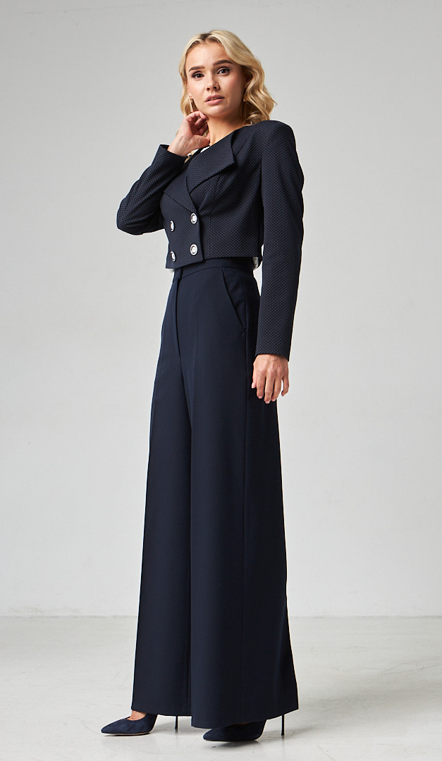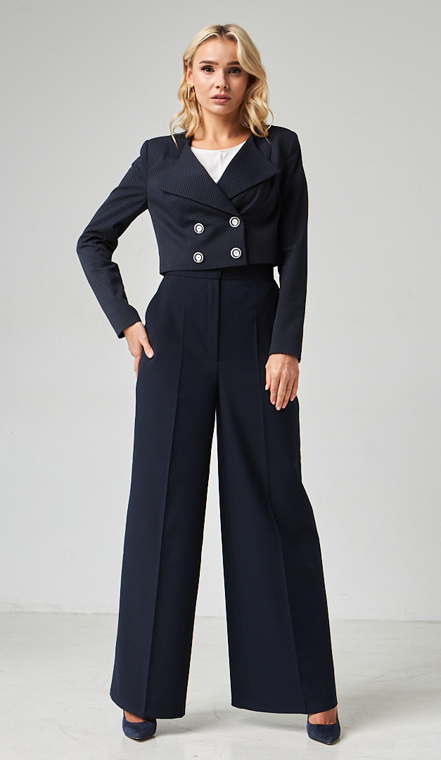 На фото создан лук с брюками и укропом жакетом синим (арт.2283)