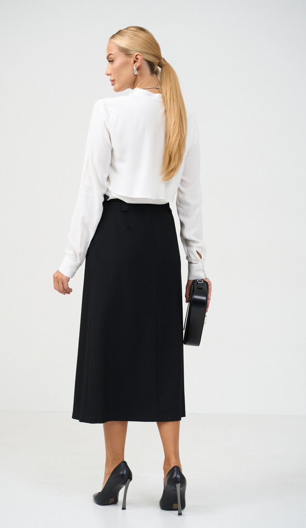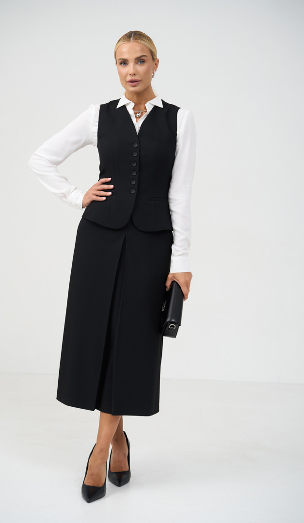 На фото создан образ с рубашкой молочной (арт.4097) и жилетом на пуговицах черным (арт.4064).
