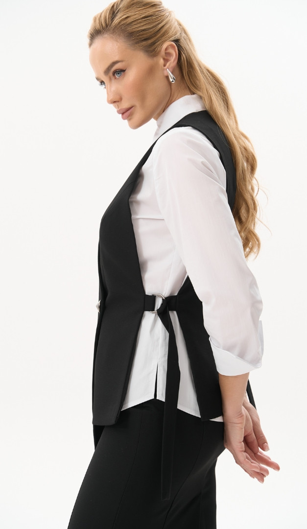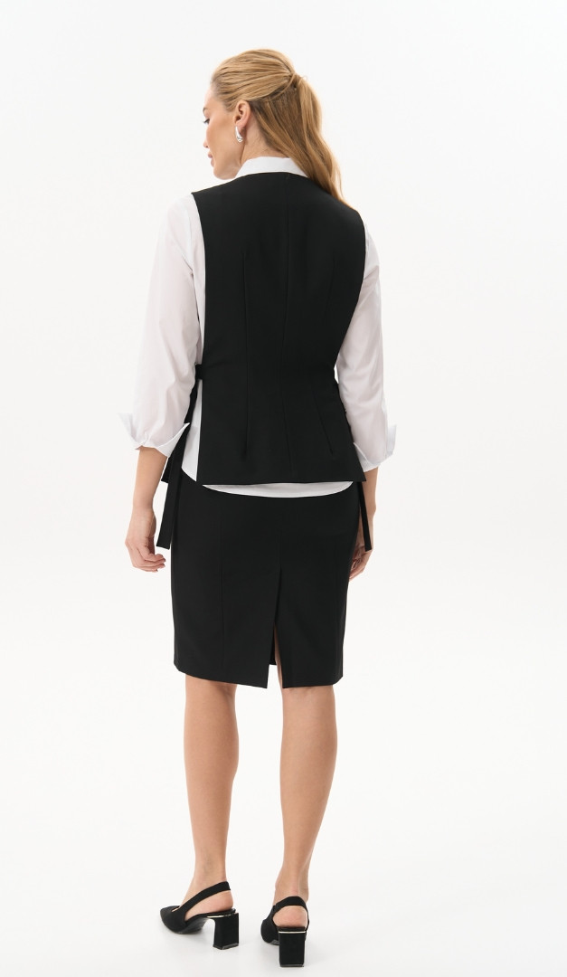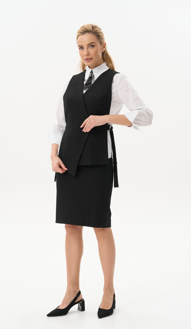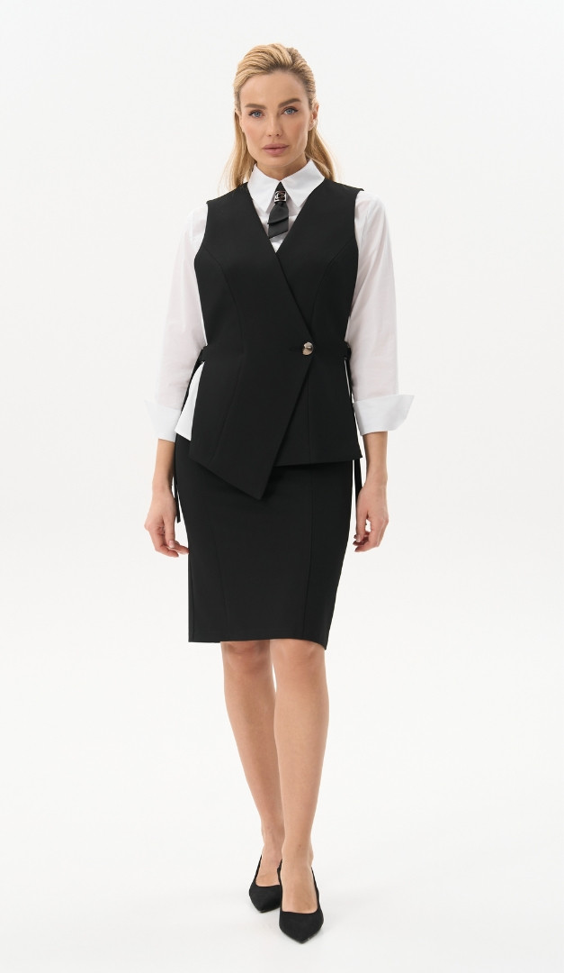 Рекомендуем жилет комбинировать с базовой юбкой черной (арт.2388) и блузкой базовой белой (арт.4007).