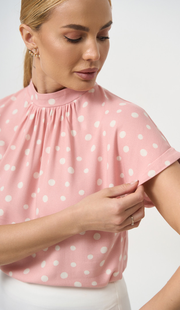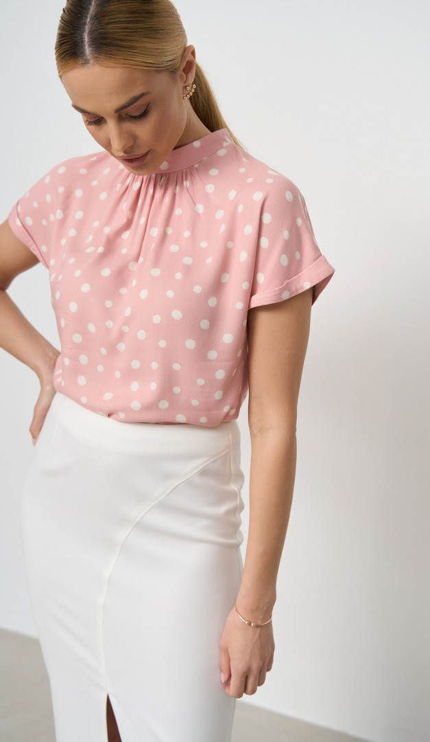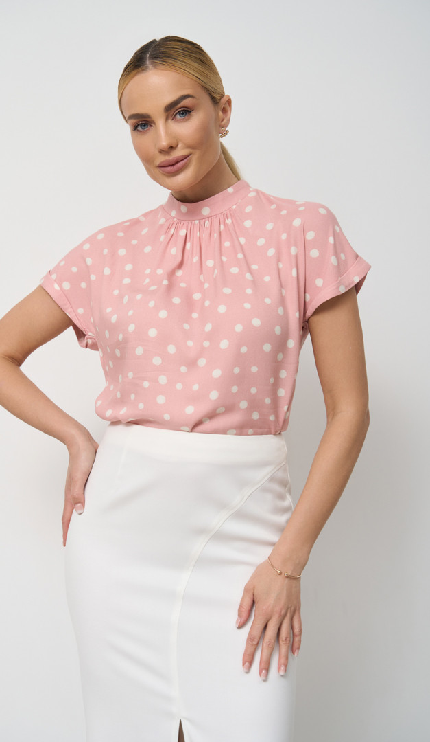 Нежная романтичная блуза в стильный горошек для офисного look-а и просто на каждый день! Ее носить — одно удовольствие, так как изготовлена блуза полностью из натуральной ткани — 100% вискозы. Модель имеет прямой полусвободный крой с цельнокроенным рукавом с небольшим отворотом, прикрывающим линию плеча. А те, кто любит женственные детали, непременно оценят аккуратный воротник-стойку с кокетливыми шалевыми завязками. Ещё один игривый штрих - это небольшой вырез по спинке.