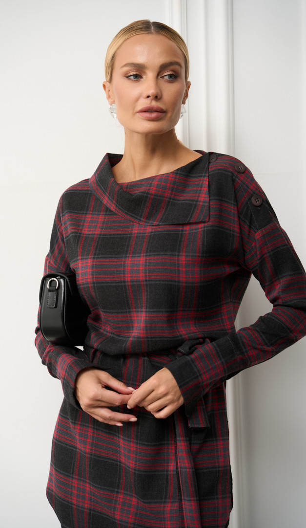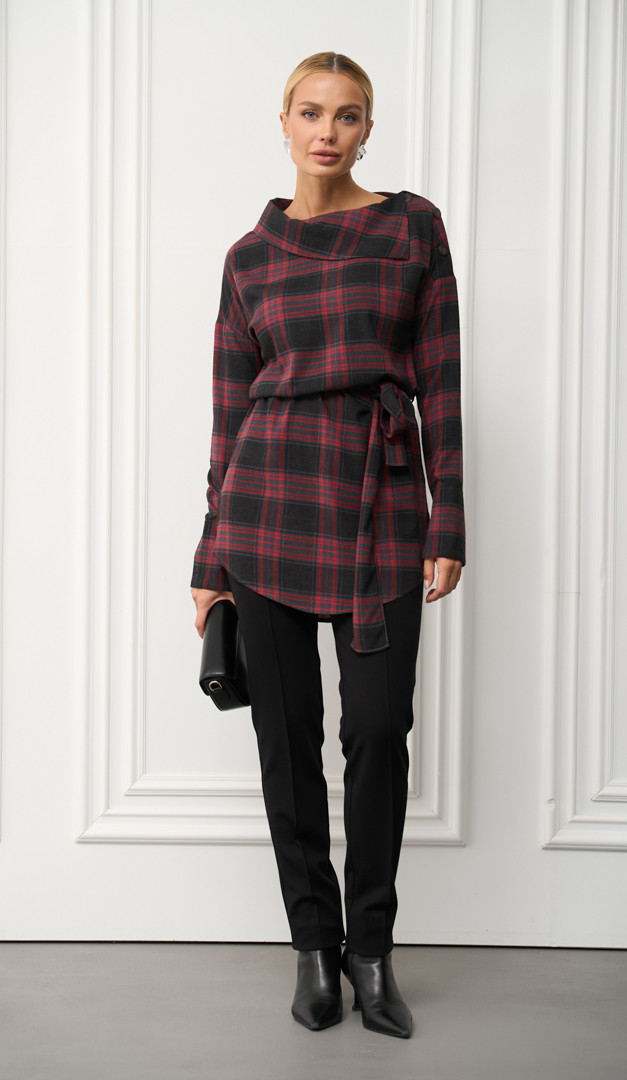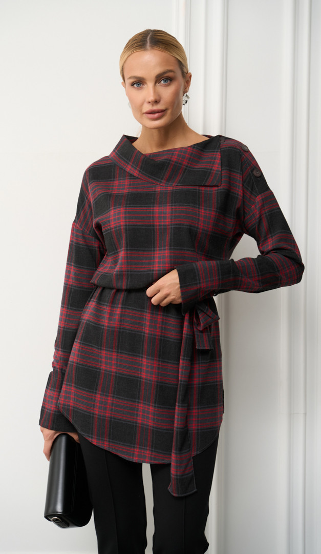 Рекомендуем для тех, кто хочет немного отойти от строгости классического стиля. В блузоне Дора сделан акцент на комфорт и лаконичность. Эта модель имеет прямой полуприлегающий силуэт с дополняющим и подчёркивающим линию талии съёмным поясом. Следует обратить внимание на оригинально оформленный отложной воротник с боковой, по линии плеча, застёжкой на пуговицы, а также - на стильные манжеты. Низ блузона Дора — стильной овальной формы с кокетливыми боковыми распорками.