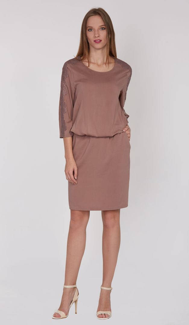 Платье Авели в сдержанном классическом стиле создано специально для жаркой погоды, при этом полностью соответствуя деловому дресс-коду. Аккуратный вырез горловины, укороченный полуприлегающий рукав, а также прямой мягко спадающий крой гарантируют чувство комфорта и лёгкости. Верхняя часть имеет свободный напуск и аккуратные присборки по линии отрезной талии, поэтому платье Авели подойдёт для любого типа фигуры и для любого размера. Более изысканным и нарядным платье Авели выглядит благодаря настроченному по линии плечей и рукавов красивому кружеву. Слегка заниженная линии талии фиксируется на внутренней эластичной резинкой. Ещё один элемент платья - это функциональные боковые карманы. По спинке в среднем шве расположена аккуратная шлица. Модель без подклада