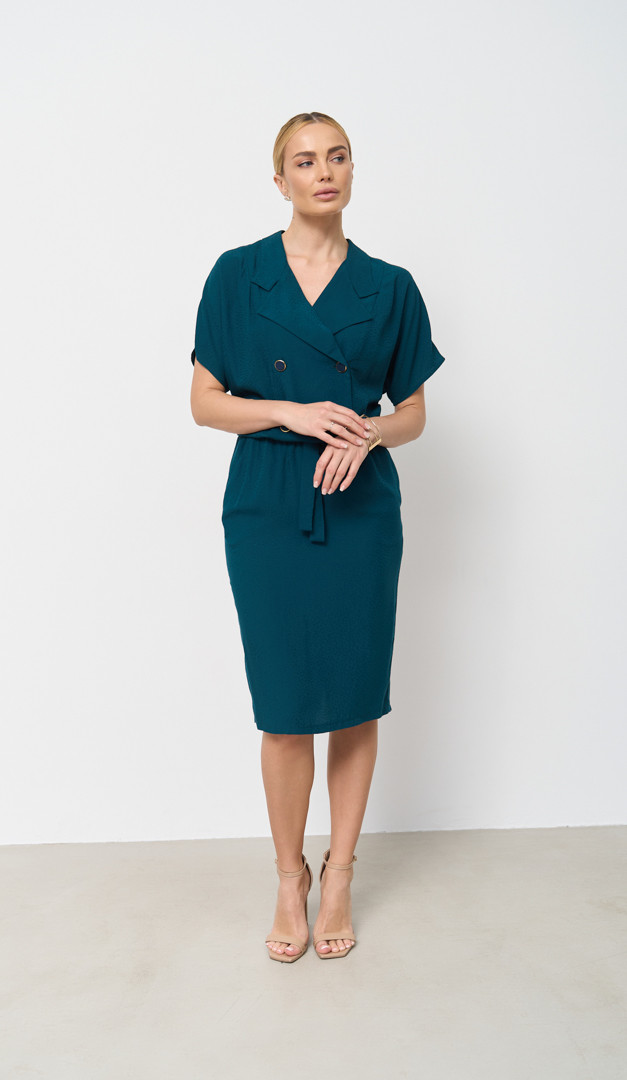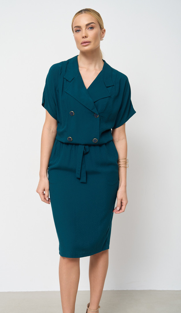 Платье двухбортное изумрудное
