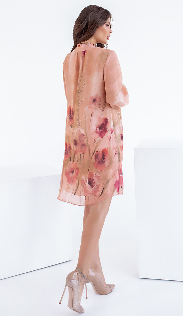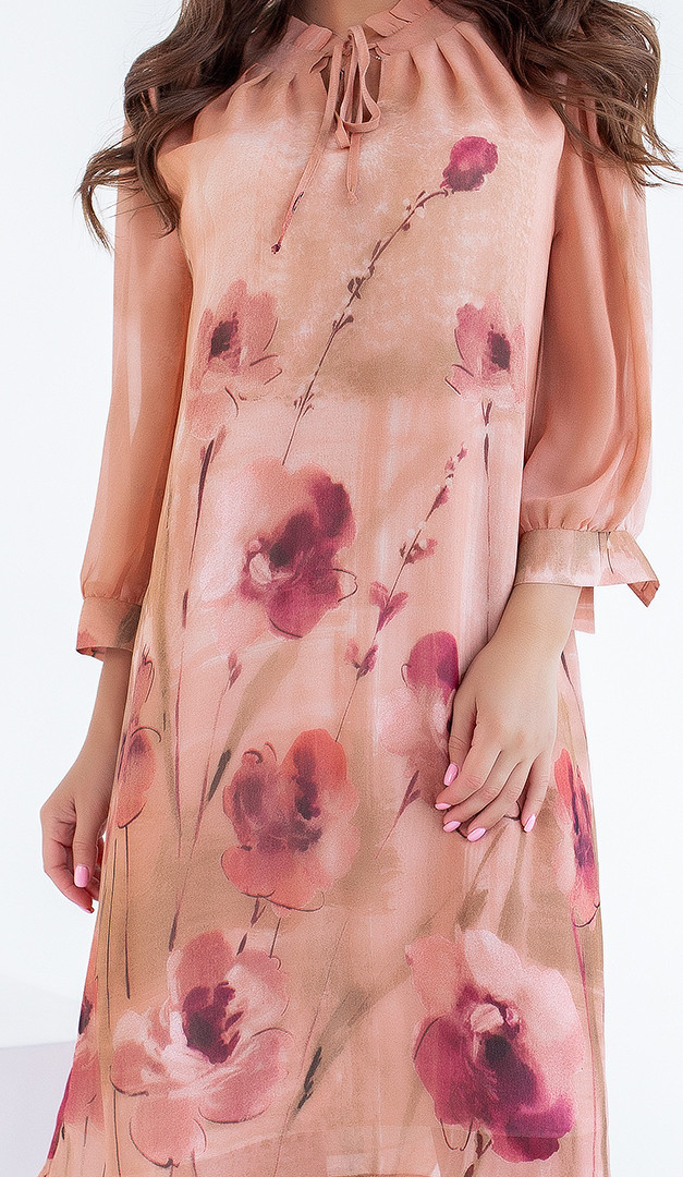 Если Вам нужно нарядное и практичное платье, рекомендуем платье Саваж в нежный завораживающий принт. Платье имеет очень удобный и комфортный фасон, который подходит абсолютно всем. Горловина мило украшена воротником-стойкой с аккуратной рюшей и завязкой на шнуровку. Кокетливо укороченный рукав оформлен манжетой.  Платье на легкой подкладке.