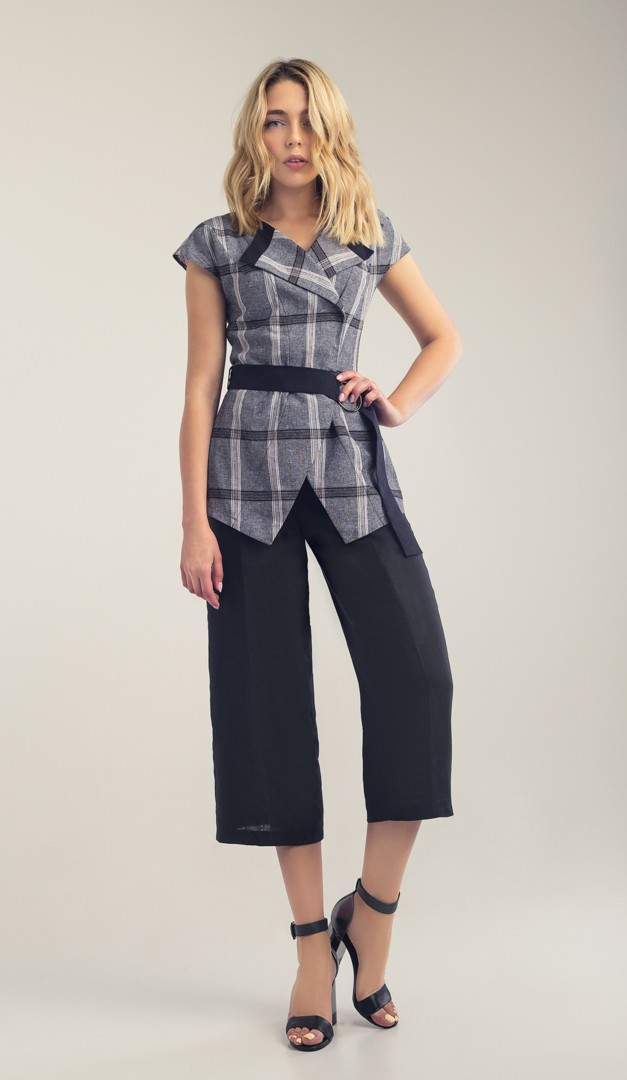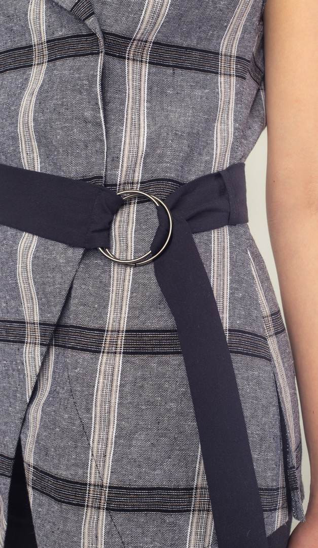 Жилет из льна в клеточку серый