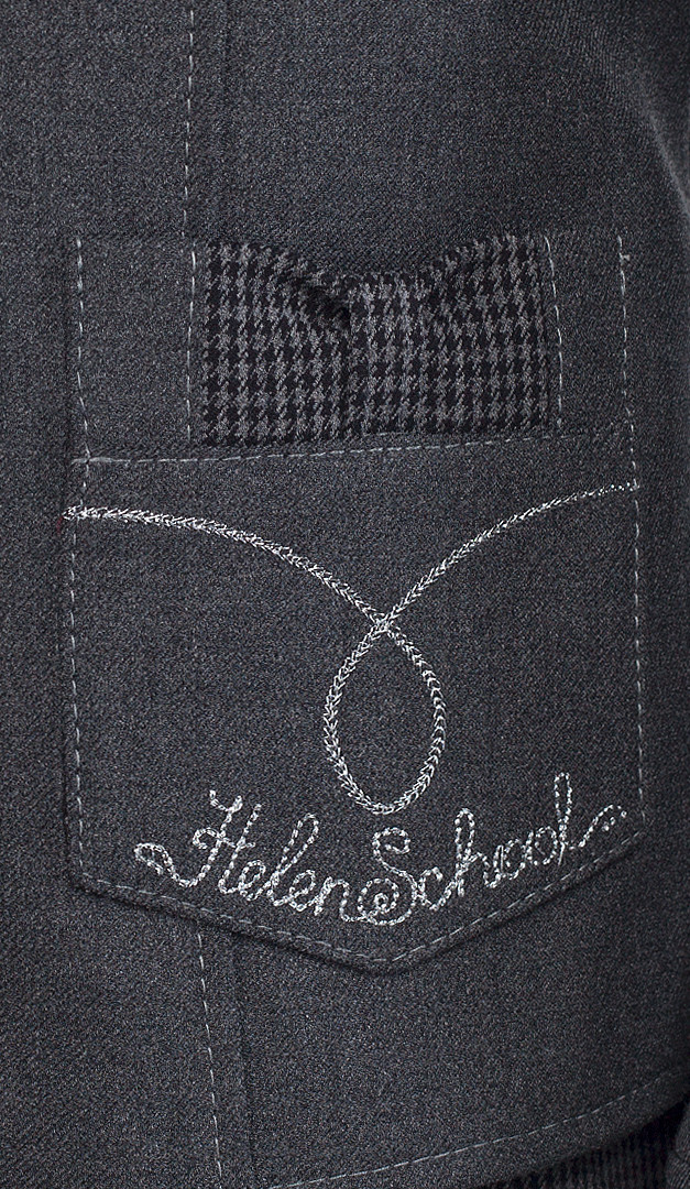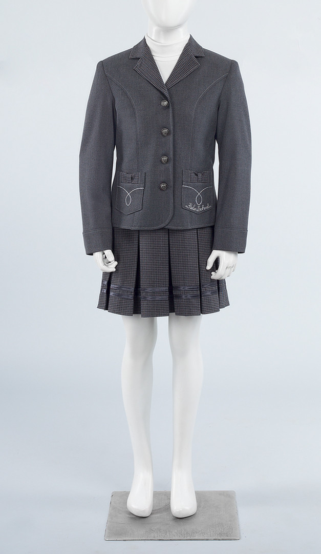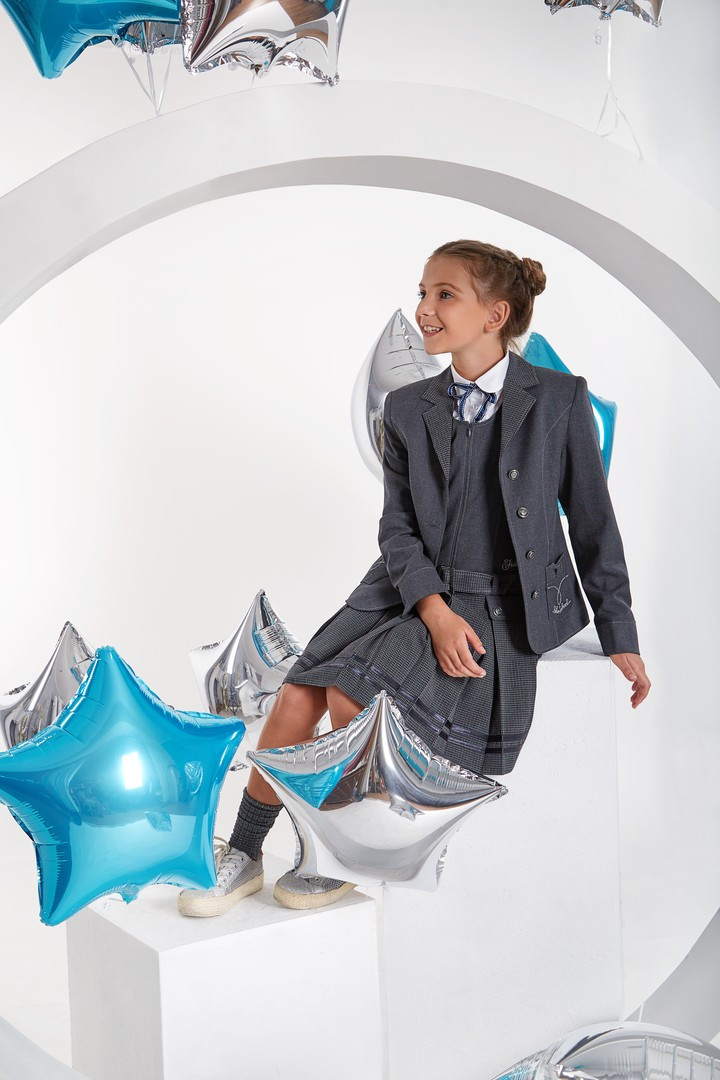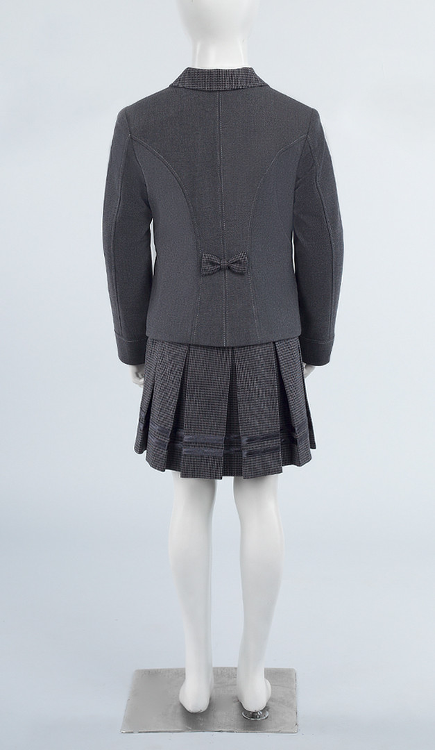 Серый жакет для девочки — это одновременно удобная, практичная и очень красивая идея для школьного дресс-кода. Жакет по полочке оформлен классическим отложным воротником с неглубоким вырезом горловины, переходящим в застёжку на пуговицы. Также передняя часть стильно оформлена фигурными рельефами и накладными функциональными карманами, украшенными миловидными бантиками. Рукав – двухшовный с имитацией манжета и с дополнительным запасом подгиба по низу. Спинка также украшена бантиком по линии талии, вшитым в фигурные рельефы, и средним швом. Изделие на подкладе.