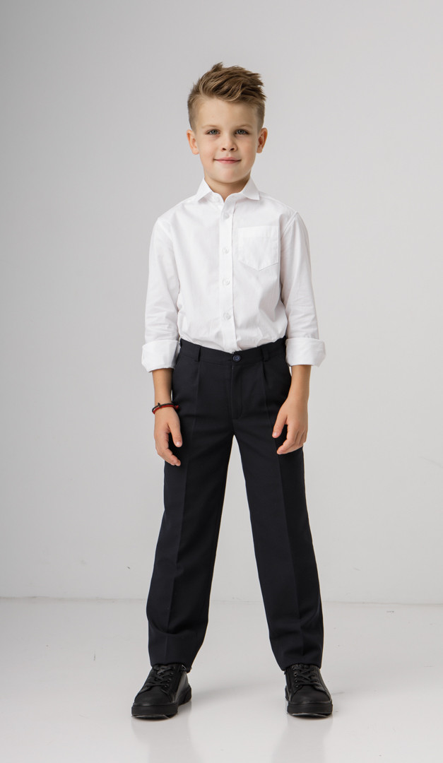 Стильная рубашка, классического прямого кроя - это идеальное дополнение к гардеробу современного школьника. Рубашка выполнена из натуральной качественной ткани, полочка изделия оформлена округлым вырезом горловины с классическим отложным воротником и дополнена накладным функциональным карманом. Модель застегивается на удобную планку-застежку на пуговицах, расположенную по центру передней полочки . Длинные рукава оформлены манжетами на одной пуговичке. Низ рубашки плавной полукруглой формы.