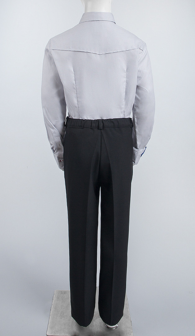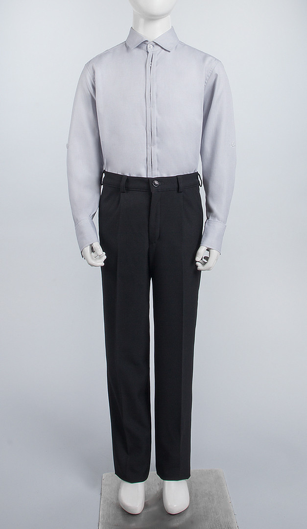 Модный классический вариант рубашки для мальчиков школьного возраста. Модель прямого кроя выполнена с классическим округлым вырезом горловины и отложным воротником. Рубашка имеет длинные рукава, оформленные манжетами с двумя пуговичками. Кроме того рукава имеют дополнительную возможность подгибаться, формируя короткий рукав, с помощью специальной планки и одной пуговицы. Застегивается изделие на оригинальную потайную планку-застежку. Еще одна изюминка данной модели — это красивая рельефная ткань с миловидным узором и дополнительные внутренние планки на воротнике и манжетах, придающие рубашке особого стиля и оригинальности. Низ модели имеет удобную полукруглую форму. Такая рубашка станет удачным дополнение не только к классическим брюкам, но и будет отлично смотреться с джинсами.