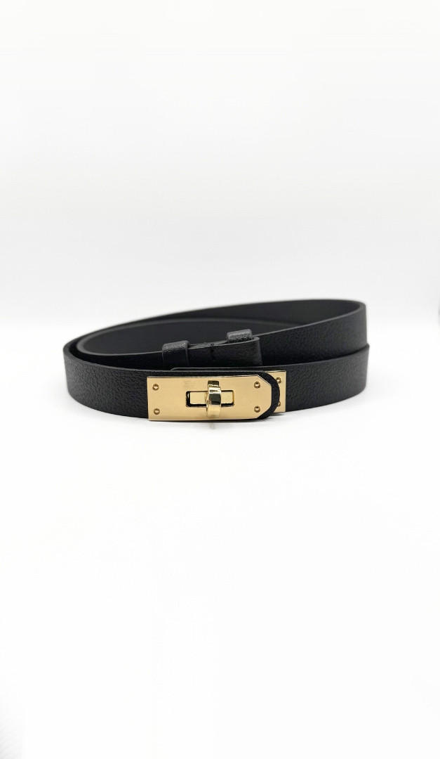 Витончений ремінь з замком пряжкою із натуральної шкіри — ідеальний аксесуар для стильного образу. Модель доповнена оригінальною золотою пряжкою, що додає вишуканості. Завдяки класичному дизайну такий виріб пасуватиме як до суконь, так і до брюк чи спідниць. Легка регуляція довжини дозволяє комфортно фіксувати ремінь на талії. Надійна фурнітура та якісне виконання гарантують довговічність.