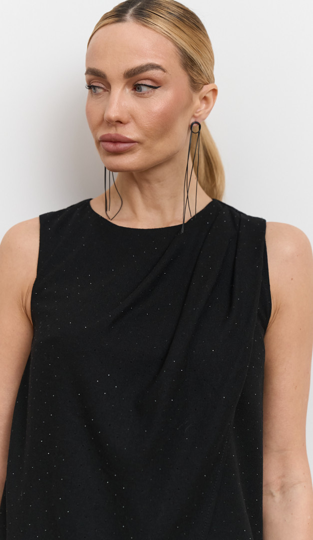 Блузон жіночий льон чорний стильне доповнення до базового літнього гардеробу. Модель розширеного до низу крою, з неглибоким округлим вирізом горловини та зручною проймою рукавів. Блузон жіночий льон чорний виконаний із легкої натуральної тканини, що забезпечить комфорт навіть у самий спекотний день. Виразності виробу додає асиметричний низ переду і трендовий ефект на запах. А мерехтливе декоративне каміння на тканині підкреслює елегантність і жіночність.