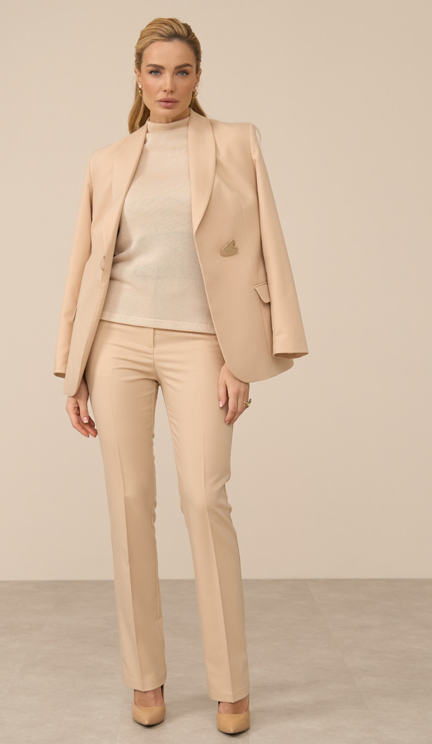 На фото створений образ з жакетом вершковим (арт.2835) і штанами вершковими (арт.2834).