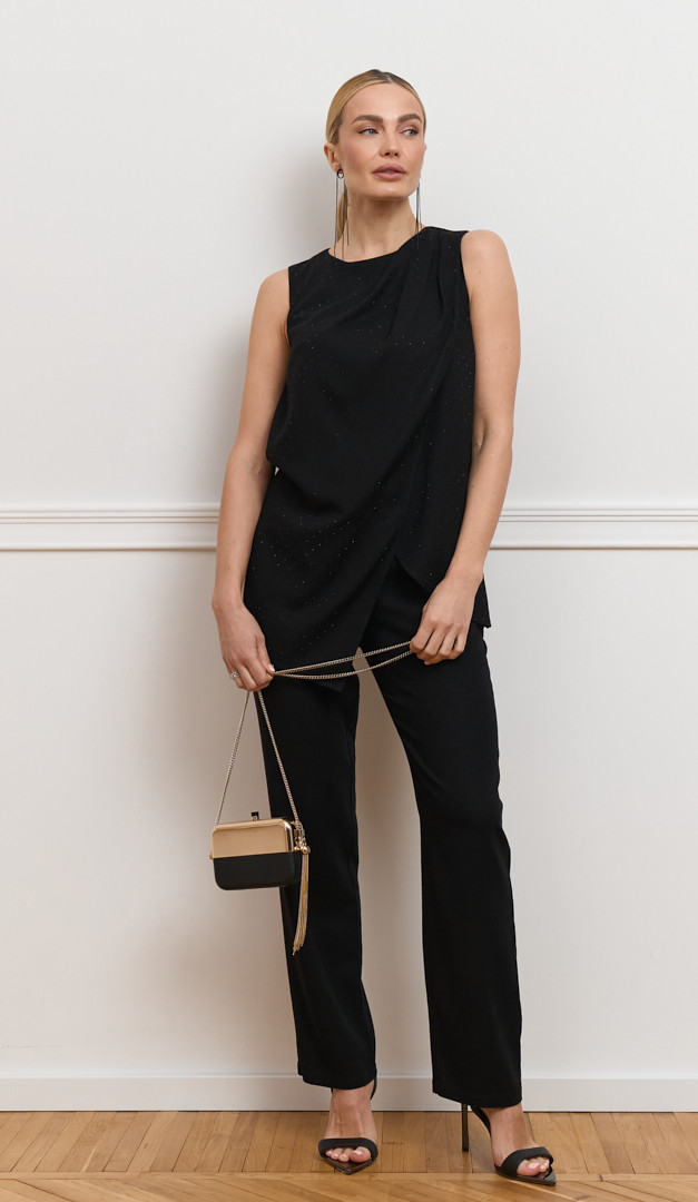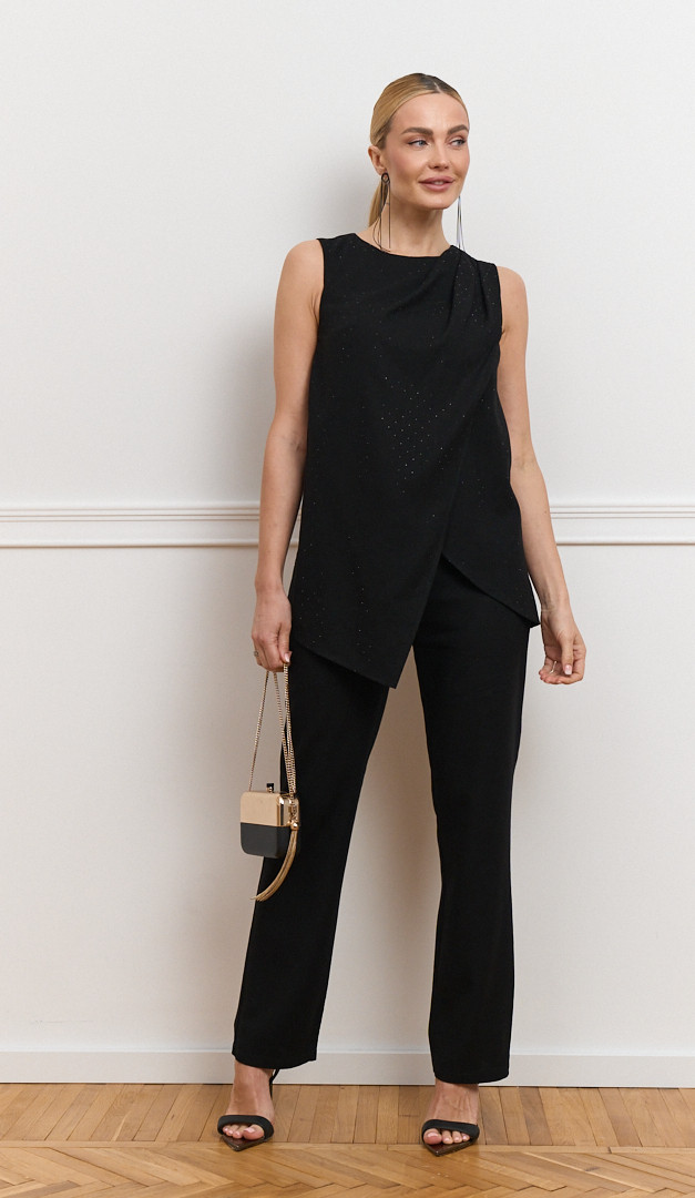 Для створення стильного монохромного образу рекомендуємо комбінувати з жакетом льон чорним (арт.2869), топом на бретельках чорним (арт. 2831) і блузоном льон чорний (арт.2907).