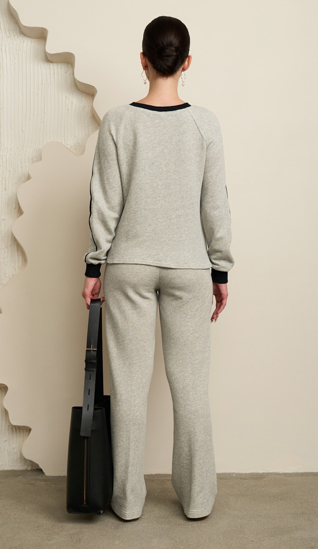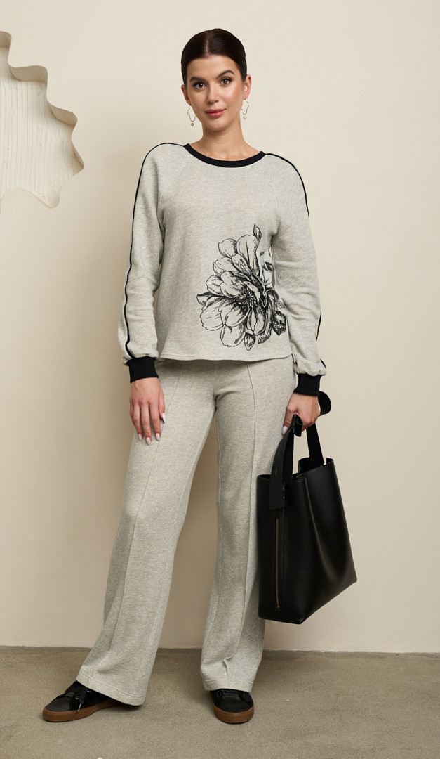 На фото створений образ з світшотом з принтом сірий меланж (арт.2761).