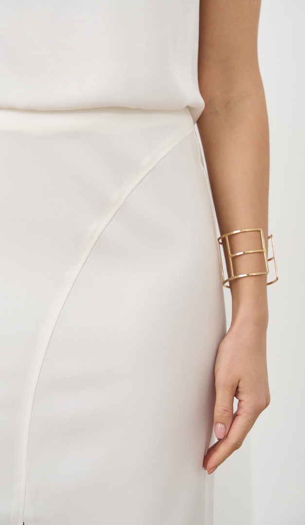 Спідниця міді молочна мегастильна річ для весняно-літнього гардеробу. Модель прямого облягаючого крою, з середньою посадкою по фігурі та елегантною довжиною міді. Спідниця міді молочна спереду виконана з високою розпіркою по центру, яка додає створеному образу спокусливості та неймовірної жіночності. Виріб застібається на потайну застібку-блискавку, розташовану в задньому центральному шві. Без підкладки.