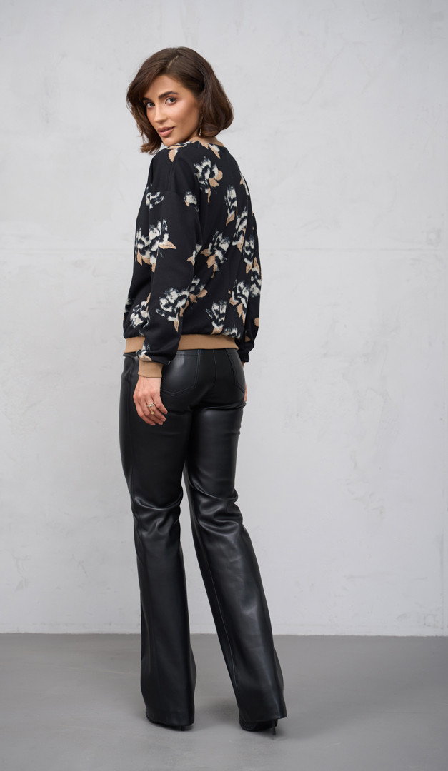 На фото створений образ з штанами з екошкіри чорними (арт.2755) .