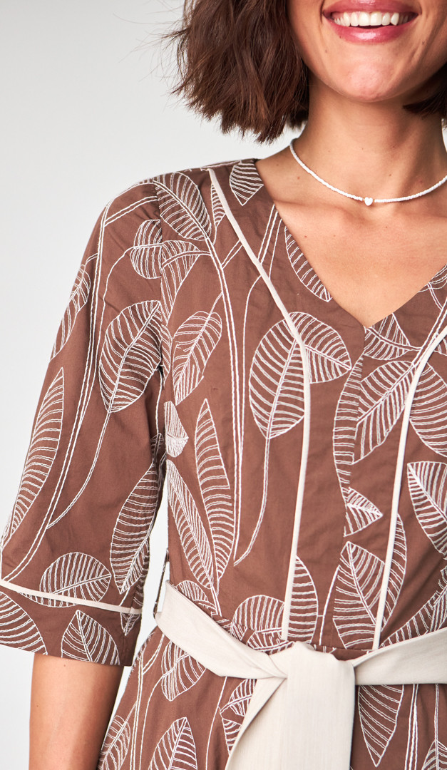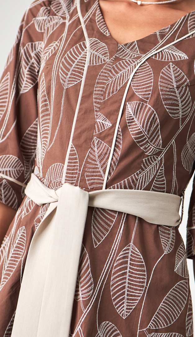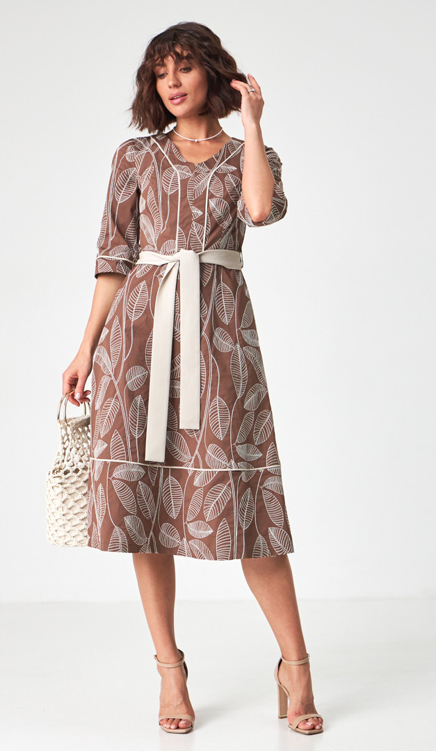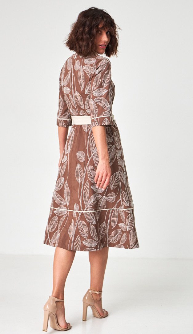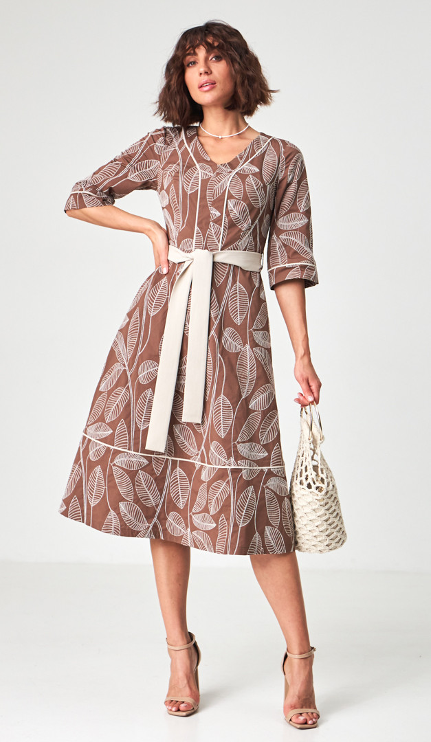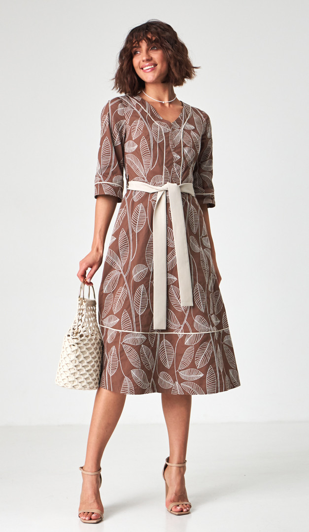 Якщо хочете створити неймовірно жіночний та елегантний образ — сукня міді з вишивкою, стане ідеальним вибором. Модель універсального для всіх типів фігури А-силуету, з прилеглим верхом і розкльошеною спідничною частиною. Сукня міді з вишивкою має неглибокий V-подібний виріз горловини, вільний короткий рукав і трендову довжину. Виразність жіночого силуету підкреслює знімний пояс, який зав'язується на лінії талії та виконаний із контрастної тканини. А додаткової практичності виробу додають функціональні прорізні кишені, розташовані по бокових швах. Сукня міді з вишивкою застібається на «блискавку» в середньому шві задньої частини. Без підкладки.