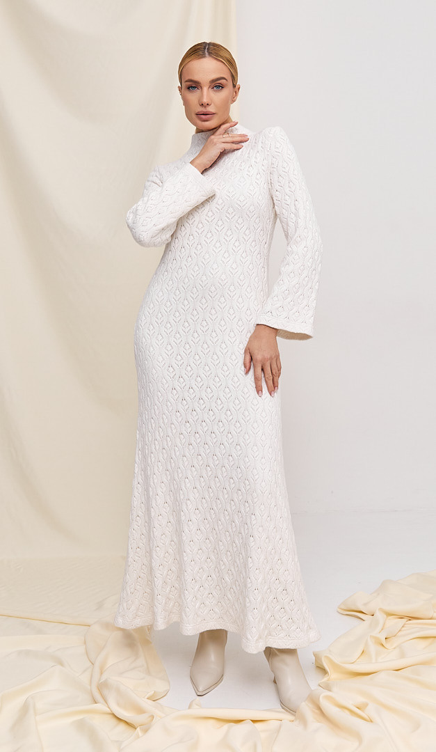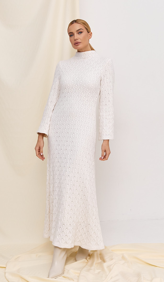 LIMITED COLLECTION by HELENA – cукня трикотажна максі ажур! Модель виконана з неймовірно красивого та ніжного трикотажу, який підкреслює вишуканість та елегантність жіночого образу. Сукня трикотажна максі ажур має розкльошений до низу крій, зручний комір-стійку та трендову максимальну довжину. Виріб з середини оформлений натуральною підкладкою, включаючи довгі рукави та горловину. Сукня трикотажна максі ажур — це саме той елемент жіночого гардеробу, який забезпечить затишок і тепло та разом з тим подарує впевненість у своїй чарівності та неперевершеності.