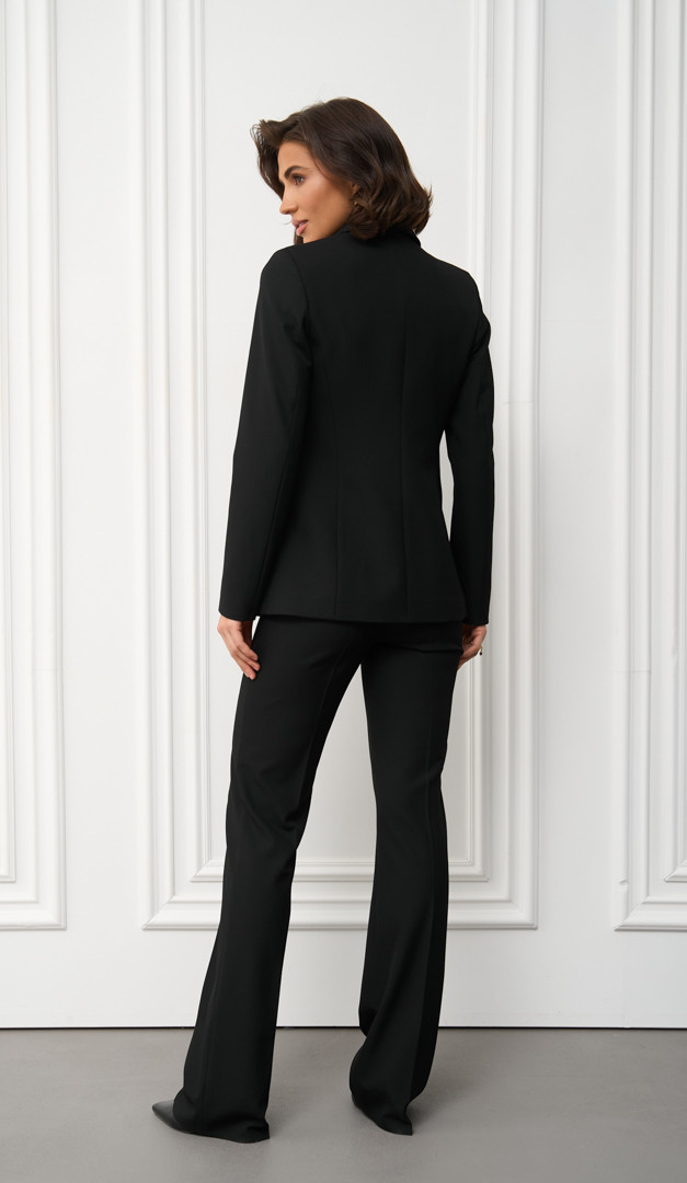 Жакет жіночий базовий чорний проста і водночас неймовірно вишукана річ. Він допоможе Вам легко створити образ стильної та впевненої леді. Модель має прямий напівприлеглий крій. Виріз горловини оформлений класичним відкладним коміром. Застібається жакет жіночий базовий чорний на два ґудзики. По лінії талії розташовані прорізні внутрішні кишені. Виріб на підкладці.