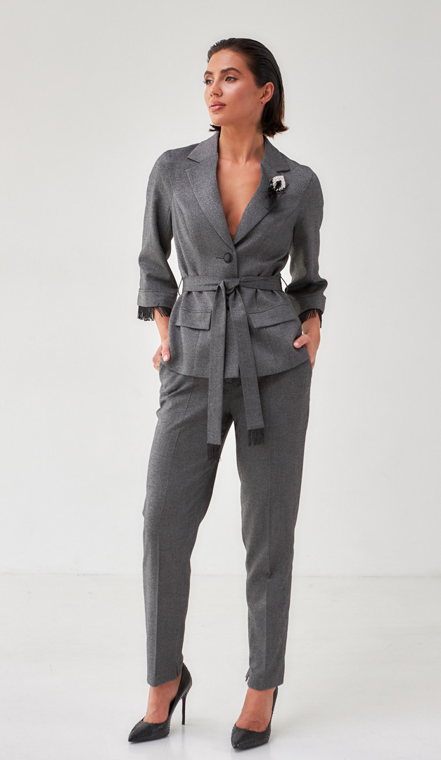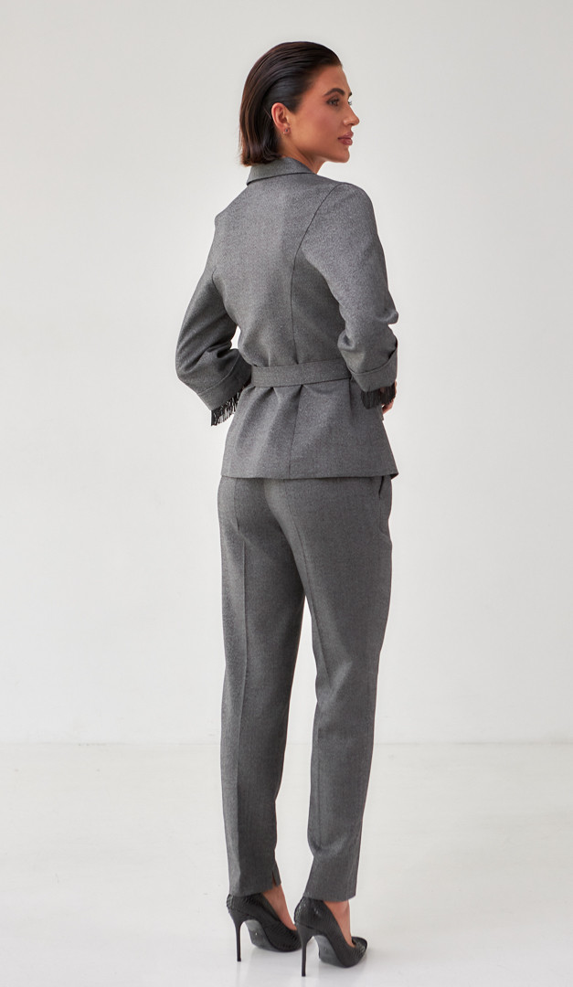 Рекомендуємо комбінувати жакет з штанами жіночими чорно-сірий меланж (арт.2422) з аналогічної тканини.