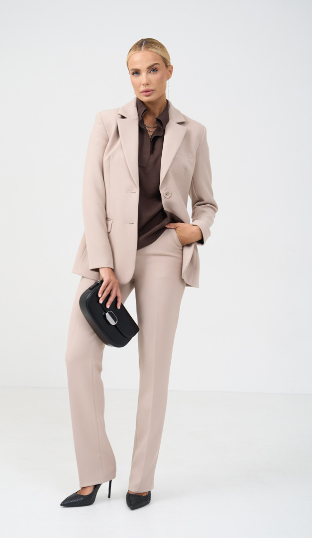 Рекомендуємо комбінувати із штанами жіночими з високою посадкою бежевими (арт.2735), жилетом класичним бежевим (арт.2737) і блузоном прямим шоколадним (арт. 2730).