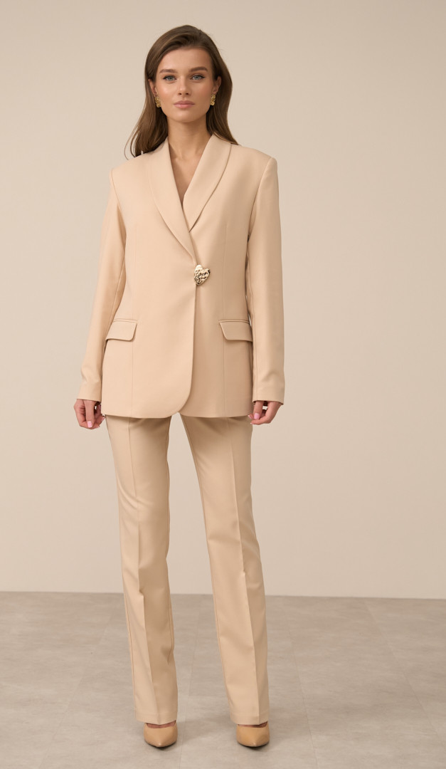Для створення завершеного образу, рекомендуємо жакет комбінувати з штанами вершковими з аналогічної тканини (арт.2834) і топом вершковим (арт.2830).