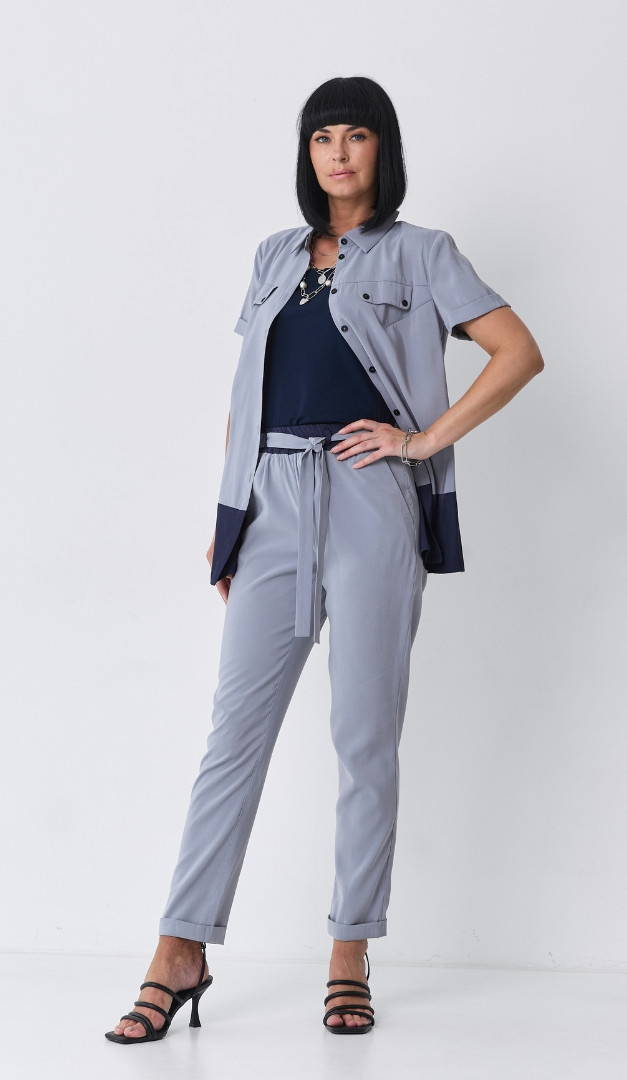 Для створення гармонійного образу рекомендуємо комбінувати з блузкою-сорочкою на ґудзиках сірою (арт.1881 та топом базовим синім (арт.1872).