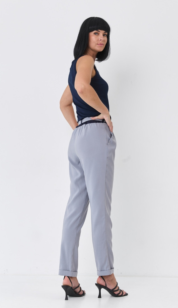 Зручні та практичні брюки жіночі з манжетами сірі стануть ідеальним рішенням для образів на кожен день. Адже завдяки своїй універсальності ця модель вдало підійде як для базового офісного дрес-коду, так і для луків у час дозвілля. Брюки жіночі з манжетами сірі зверху виконані з широкою резинкою, мають середню посадку по фігурі та прямий звужений крій. З боків модель доповнена внутрішніми функціональними кишенями, а низ виробу оформлений стильними манжетами. Без додаткових застібок.