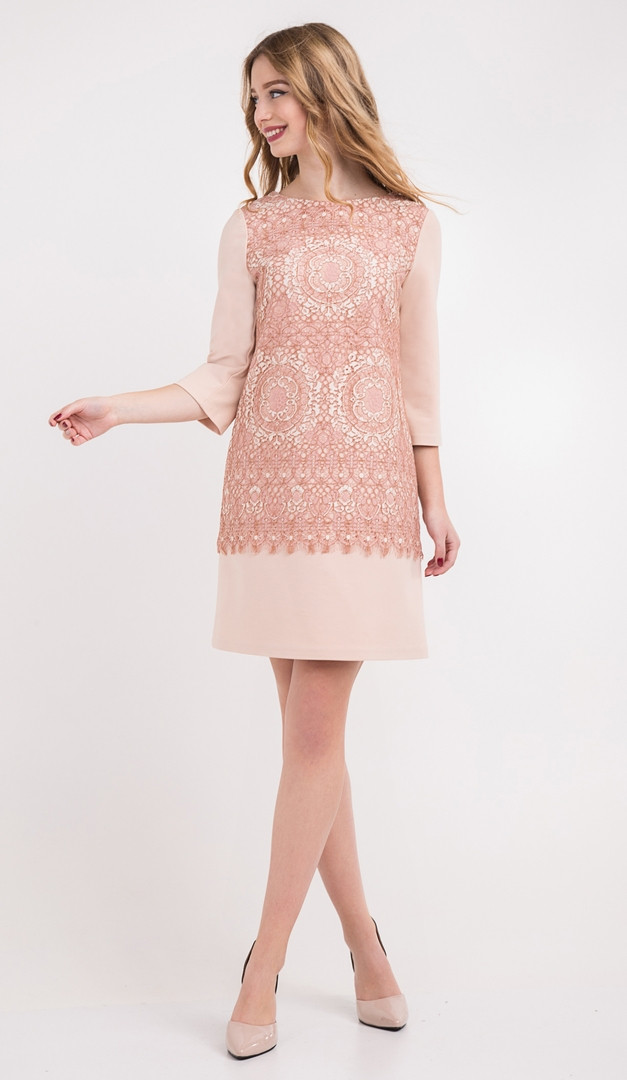 Ошатне плаття Мерелін для особливих подій у Вашому житті! А також для таких випадків, коли Вам просто хочеться підняти настрій — адже лаконічний дизайн підійде і для повсякденного гардеробу. Фасон плаття Мерелін розрахований на всі типи фігури — адже напіввільний трапецієподібний крій в поєднанні з укороченим прямим рукавом допоможе сформувати пропорційний стрункий силует. Основне, звичайно, що впадає в око в цій моделі — це чудове, з оригінальними візерунками, мереживо. Виріб без підкладки, має одну невелику застібку на ґудзик ззаду в області шиї.