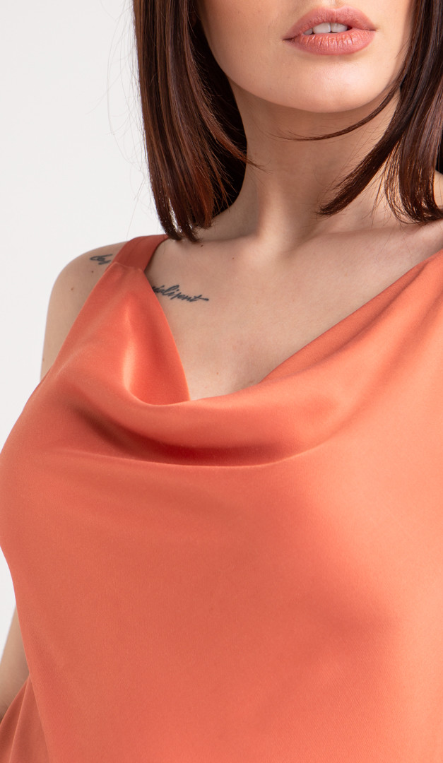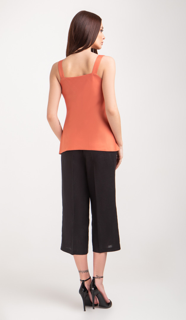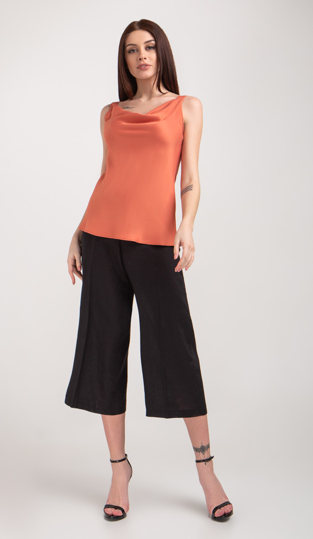 Це стильний топ базовий з драпіровкою терракот з ошатними нотками. Завдяки лаконічному дизайну в комбінації з оригінальною атласною тканиною топ базовий з драпіровкою чорний ефектно доповнюватиме будь які повсякденні і нарядні образи. Відкритий драпірований верх на шлейках спокусливо підкреслює лінію декольте і плечей.