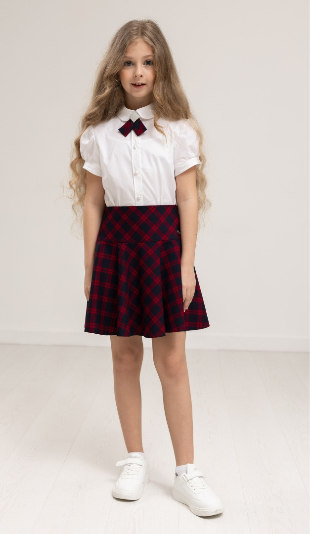 На фото створений образ із спідницею в клітинку (арт.2728) та прикрасою для дівчинки (арт.1793).