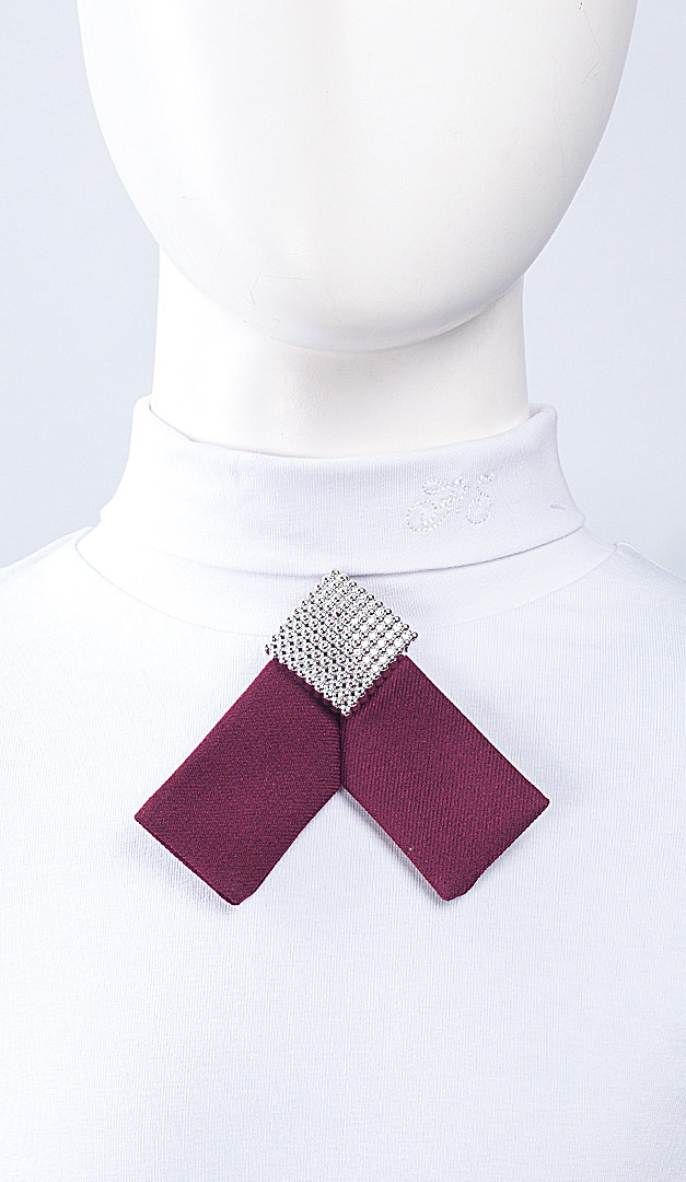 Оригінальний штрих класичного образу — це елегантний знімний бантик. Цей аксесуар по центру доповнений ефектною брошкою, яка пристібається.