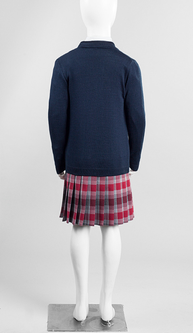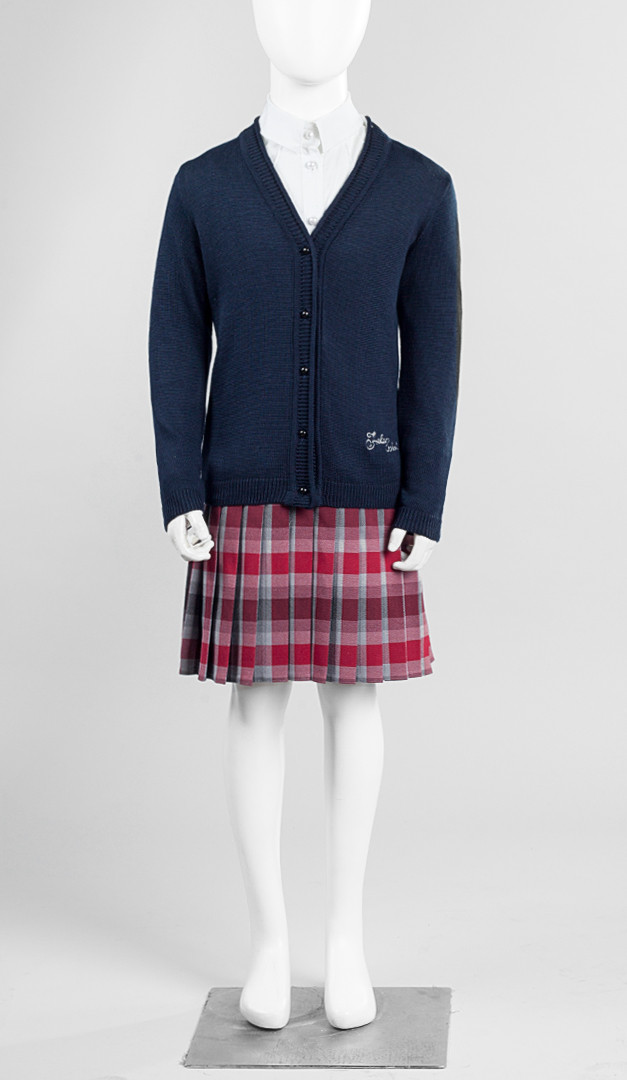Універсальна і дуже практична трикотажна кофта для дівчинки синя. Відмінний варіант для модниць шкільного віку. Модель виконана з V-подібним вирізом горловини, що плавно переходить в планку-застібку на ґудзики і довгим рукавом. Низ трикотажної кофти і неширокі манжети рукавів оформлені м'якими планками-резинками. Класичний мінімалістичний дизайн кофти дозволяє легко комбінувати її з іншими речами. Це ідеальний варіант для доповнення, як шкільного так і повсякденного гардеробу Вашої дитини. Для більшої практичності, зсередини кофти вставлена ​​спеціальна атласна стрічка, на якій можна вказати номер школи, клас та ініціали дитини.