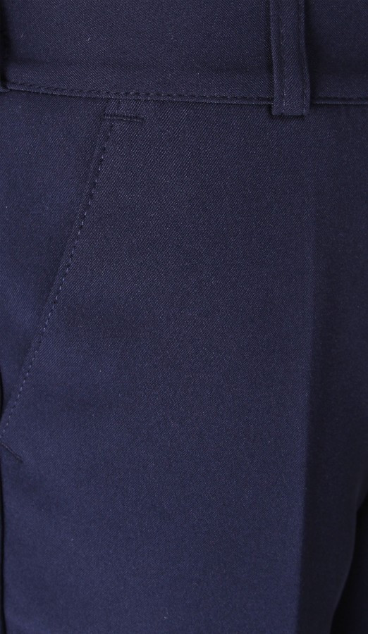 Класичні брюки для хлопчика прямого силуету зі стрілками по передніх половинках на підкладці. Лінія талії фіксується поясом з петельками, з боків якого вшиті резинки. Практичності брюкам надають косі кишені з боків передніх половинок, а також кишеня з застібкою на ґудзик на задній половинці.